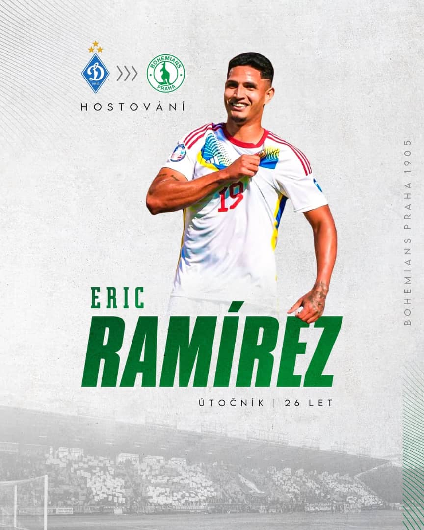 El delantero venezolano Eric Ramírez es nuevo jugador del Bohemians de la primera división de la República Checa, el cual llega cedido del Dinamo Kiev de Ucrania.El ariete tendrá su segunda experiencia en suelo Checo, tras un breve paso por el Karviná en la temporada 2019-2020 y que llega después de una cesión en el Tigre de Argentina.